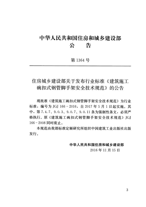 建筑施工碗扣式鋼管腳手架安全技術(shù)規(guī)范JGJ1662016